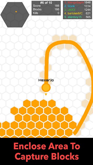 玩法目标就是控制你的角色移动并圈住更多的六边形土地,还是比较考验玩家的走位和智谋的,很有挑战性;