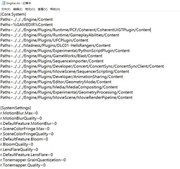 win键+r打开运行 输入%localAppData%,找到Madness→Saved→Config→WindowsNoEditor→Engine.ini