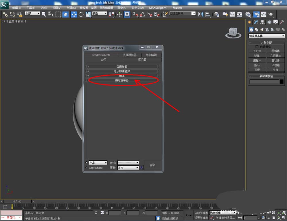 1、打开3Dmax2012软件,点击【创建】-【几何体】-【球体】,在作图区域绘制一个球体模型。选中球体,点击【对象颜色】将模型的对象颜色设置为:白色;