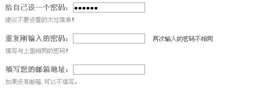 重复密码的时候我写错了,于是我得到提示说“两次输入密码不一致,请确认后重新输入”,于是我再一次的填写正确的重复密码,可是这个提示却依然还在那里“嚣张”的看着我。我要怎么做你才能告诉我填写正确呢?!